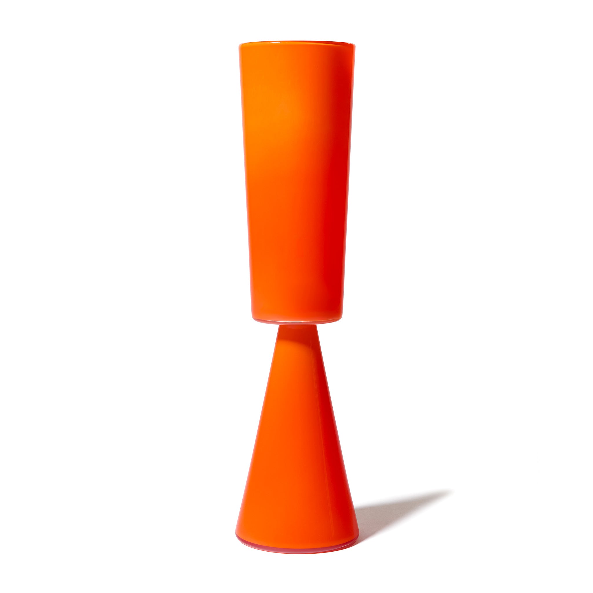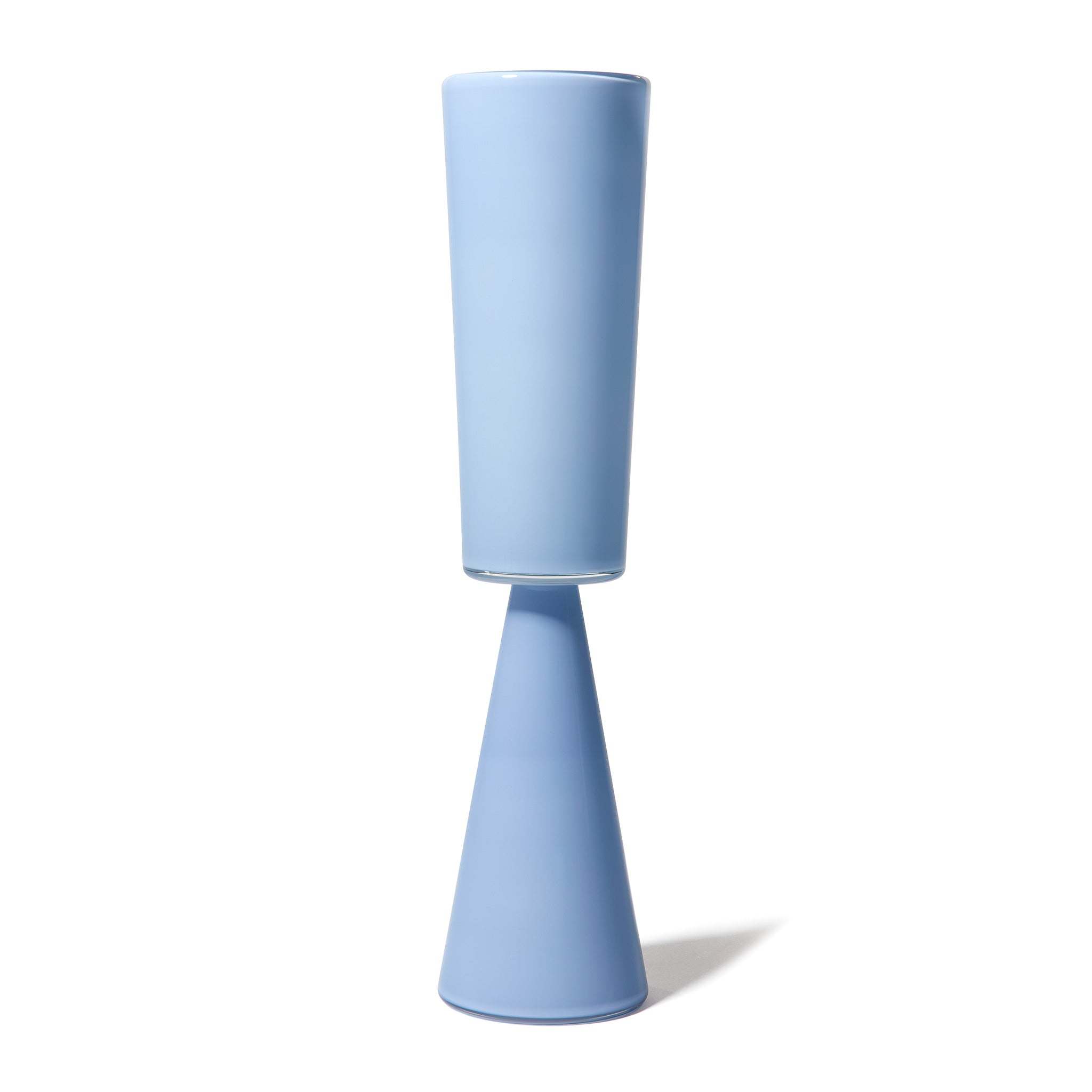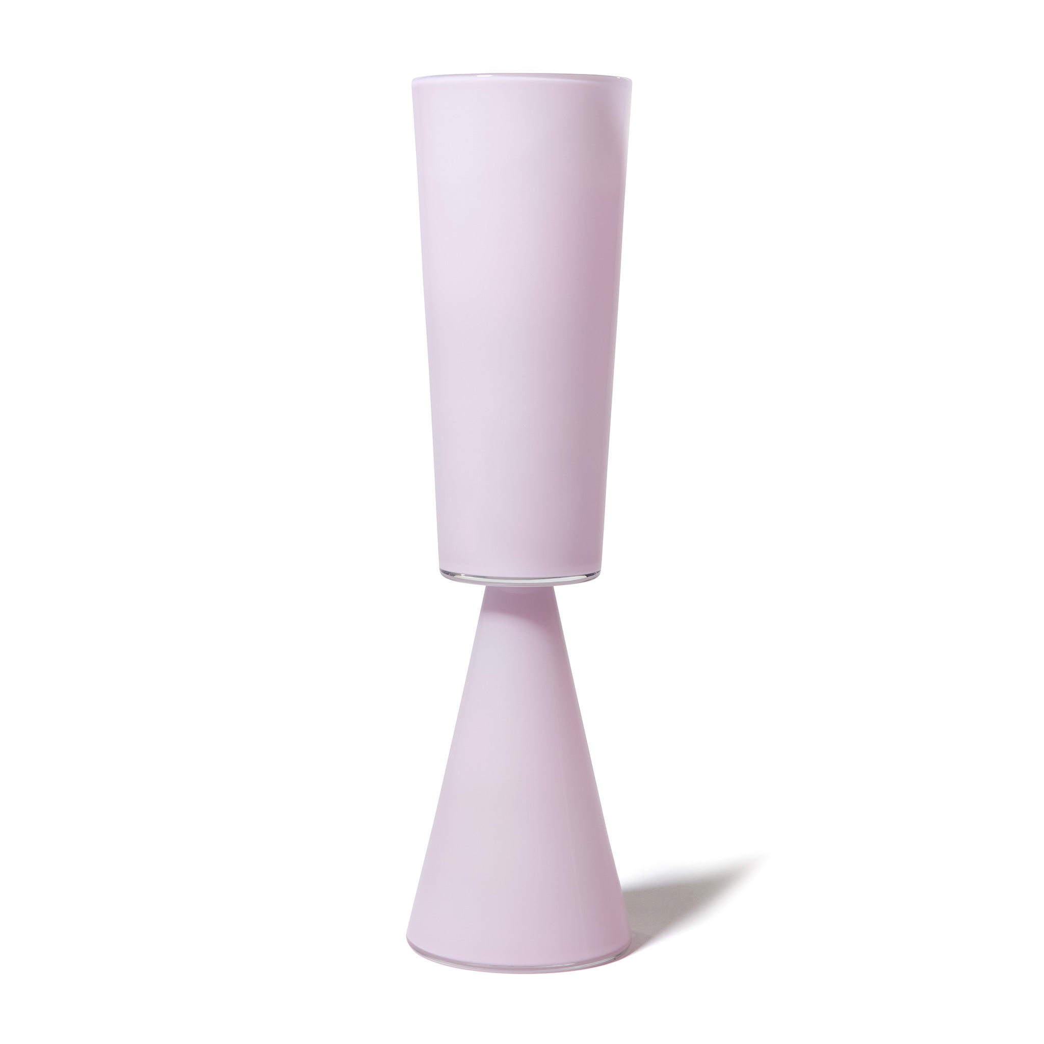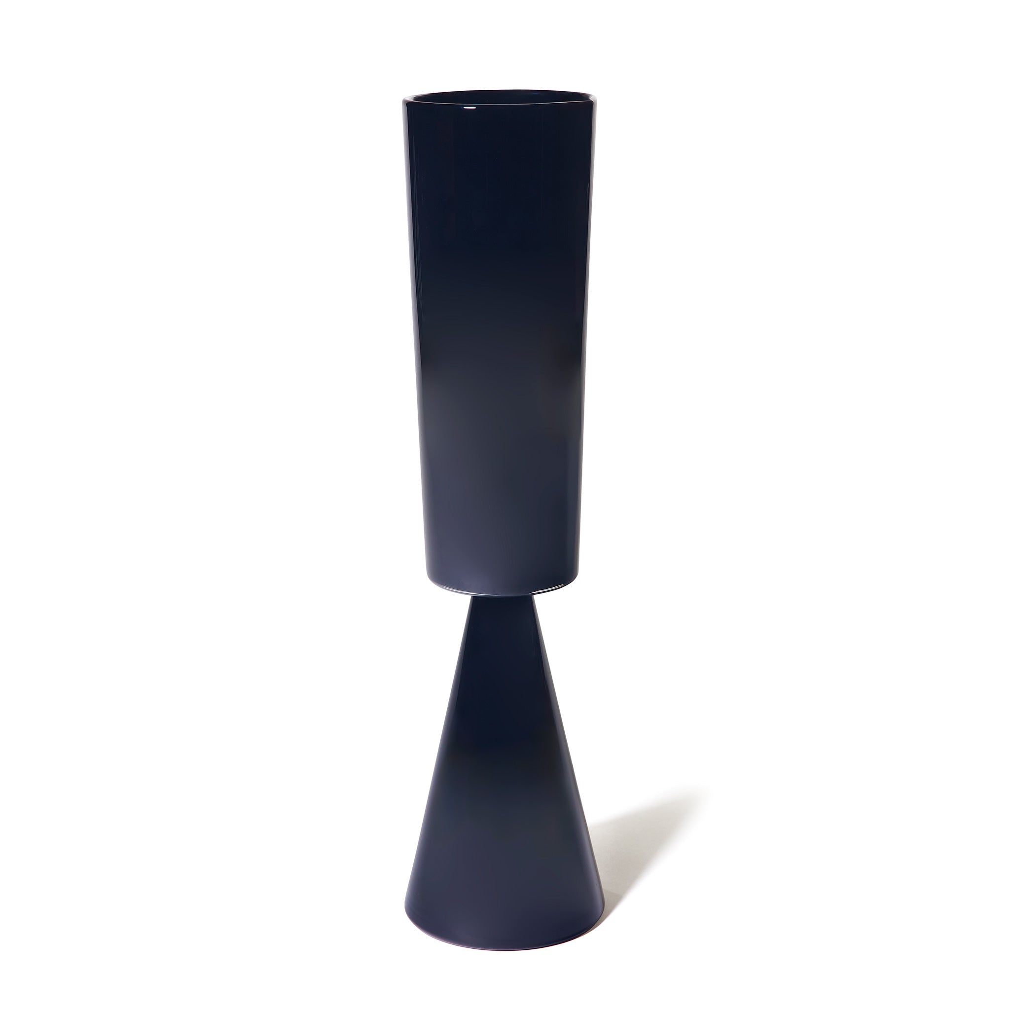 Sleek, statuesque, and effortlessly refined, the Fiorelli Tall Tapered Cylinder brings vertical elegance to the collection. Perched atop a slender conical base, its elongated profile draws the eye upward, creating space for tall stems or sculptural arrangements to shine. The taper adds a sense of being grounded, while the opaque glass finish lends to its colorful depth. Bold in proportion yet minimal in spirit, a striking silhouette that anchors a room with grace and intention.