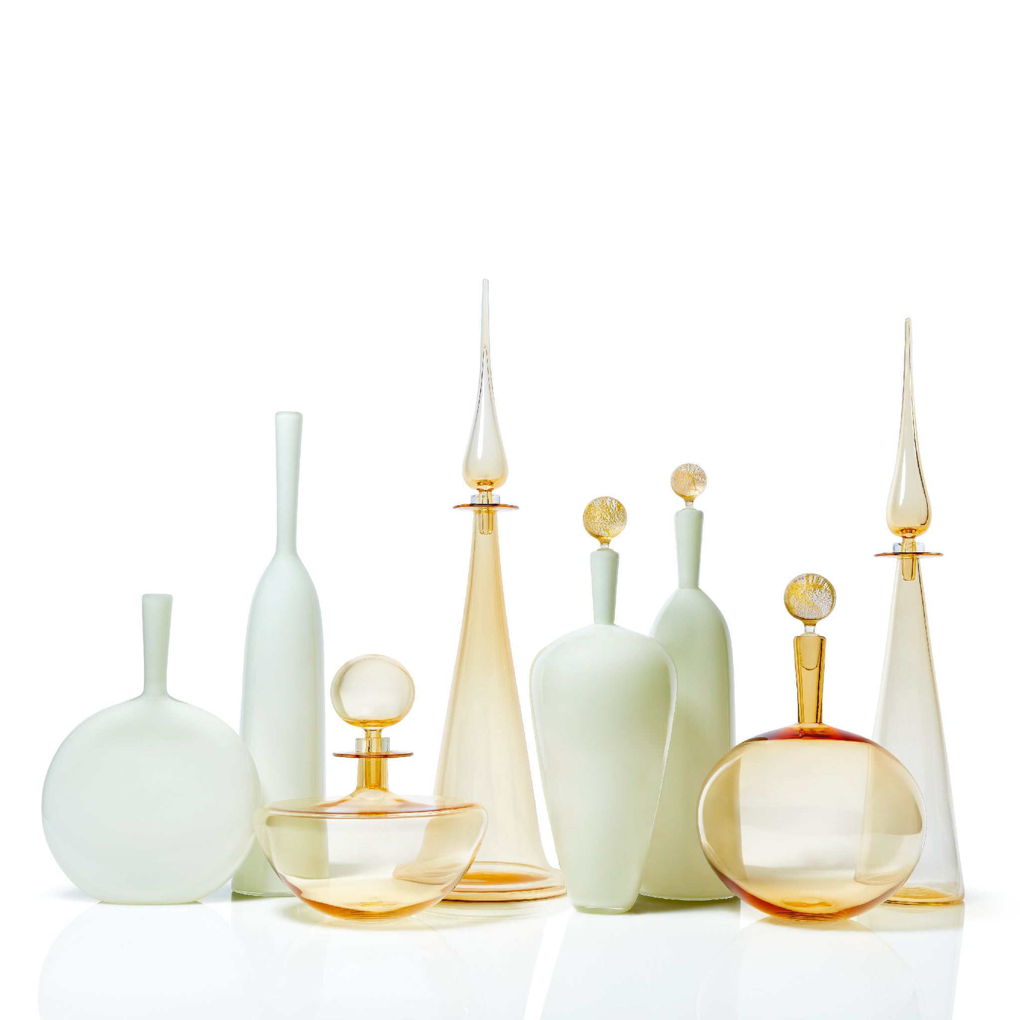 The Montpelier Collection is inspired by the serene beauty of Vermont’s snowy winter landscapes. This elegant collection showcases meticulously crafted glass vessels in soft Ivory and subtle Whiskey, capturing the essence of the state's enchanting winter scenes. With its mix of Angelics, Petite and Large Decanters and Carmella Barware, this set is a testament to the design brilliance of the Cariati signature style, flowing effortlessly to create a stunning statement.