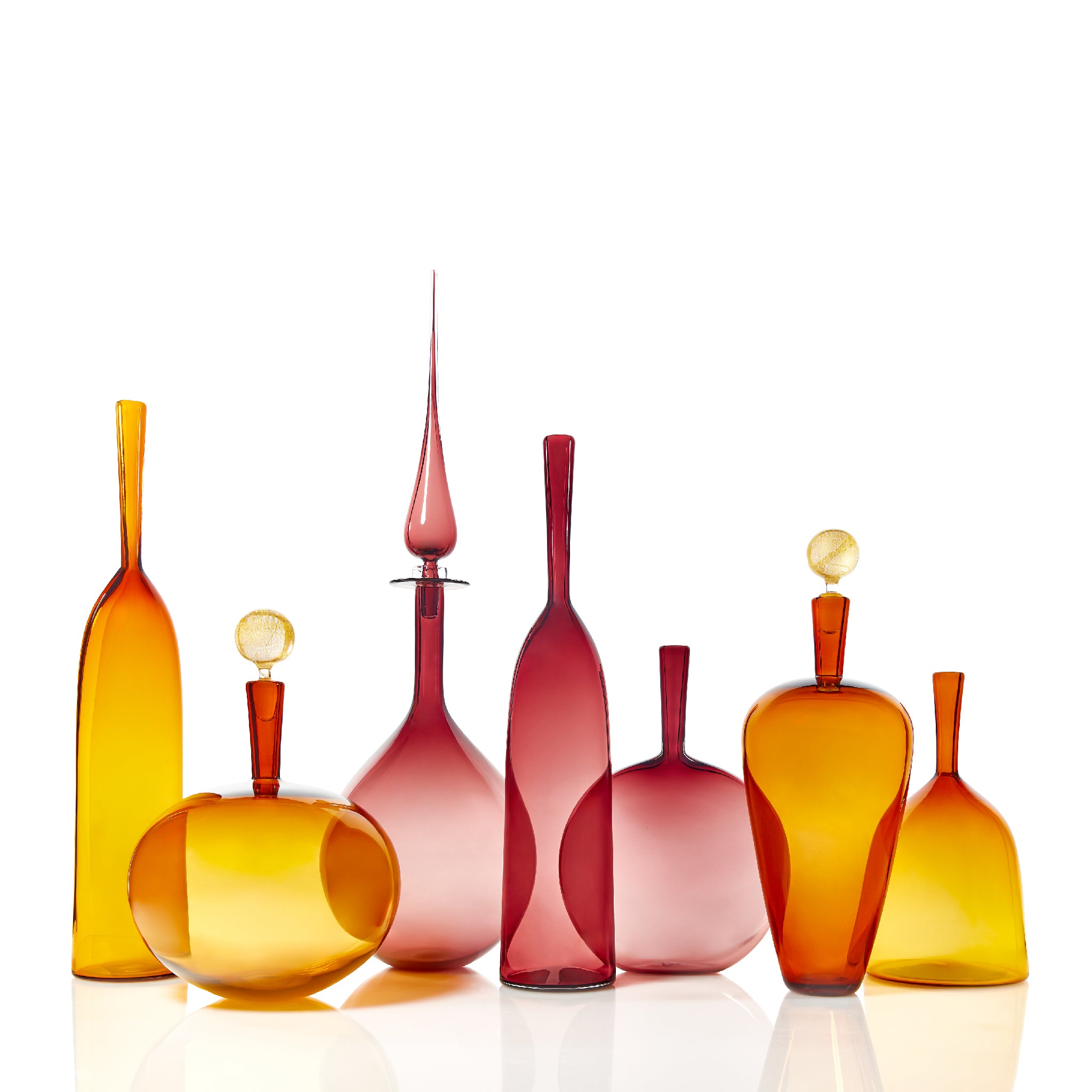 A stunning tribute to the vibrant fall season beauty of Savannah, Georgia, this Collection features meticulously crafted Cariati vessels in warm Amber and rich Rouge. The warm tones of Amber evokes the golden hues of fall, while the bold Rouge reflects the deep reds that characterize the season. Elevate your interiors with this collection, where the captivating colors of fall are referenced in this beautifully designed glassware.