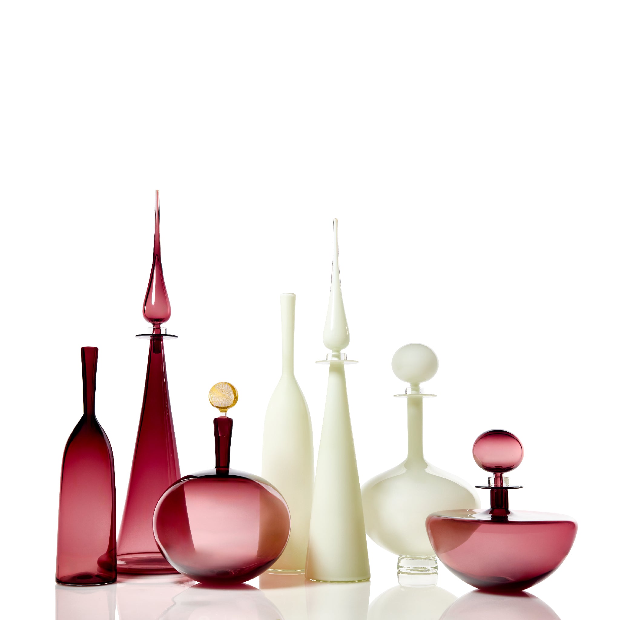 Angelic Small Bottle is 3.5"D x 3.5"W x 15"H, Large Fluted Cone Decanter is 8"D x 8"W x 27"H, Carmella Barware Low Round is 8.5"D x 8.5"W x 12.5"H, Angelic Large Bottle is 4.25"D x 4.25"W x 19"H, Petite Decanter Straight Cone is 4.5"D x 4.5"W x 22"H, Petite Genie Bottle Decanter is 8.5"D x 8.5"W x 15.5"H, Petite Low Arc Decanter is 8.25"D x 8.25"W x 10"H